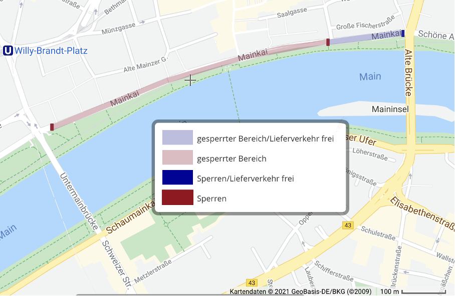 Im Zeitraum vom 30. Juli 2019 bis zum 30. August 2020 wurde das nördliche Mainufer zwischen der Untermainbrücke und der alten Brücke in Frankfurt am Main probeweise gesperrt (Stillbauer, 2019). Ziel dessen: eine Verkehrsberuhigung der Innenstadt sowie die Aufwertung des öffentlichen Raumes durch Grünanlagen und Plätze. Beschlossen wurde dies im Römer von der Koalition aus CDU, SPD und Grünen (Pfeiffer-Goldmann, 2019). Die Idee von einer autofreien Innenstadt reicht jedoch weit in die 1970er Jahre zurück.