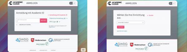 1. Schritt: Öffnen Sie diesen Link, klicken Sie auf „Föderierte Anmeldung“ und wählen Sie die Einrichtung „Universität Frankfurt“ aus.
