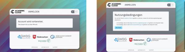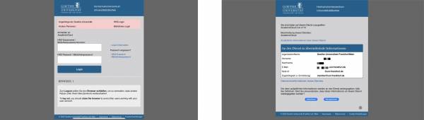 2. Schritt: Geben Sie Ihre HRZ-Anmeldedaten ein und klicken Sie auf Login. Anschließend sehen Sie Informationen zur Datenübermittlung, welche Sie akzeptieren müssen. Die Anmeldung dauert einen kurzen Moment.