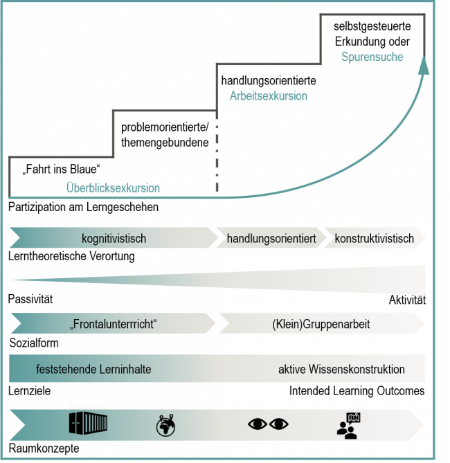 Diese vier „Klassiker“ von Exkursionstypen lassen sich in einer Graphik gegenüberstellen: